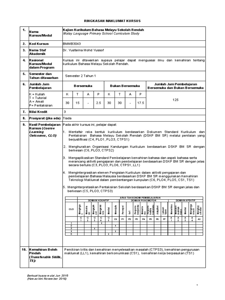 Bmmb3043 Kajian Kurikulum Bahasa Melayu Sekolah Rendah Pdf
